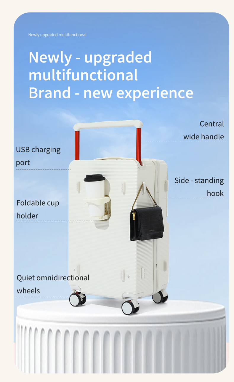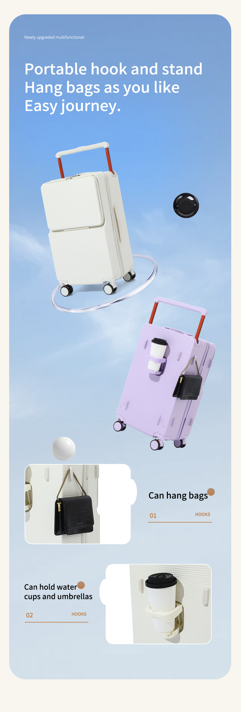 (BJ-9666) New Wide-Handle Front-Opening Suitcase, 20/24in Durable ABS+PC Luggage with Hook & Cup Holder, 360° Silent Wheels & Secure Lock , Trendy Travel Colors (Unisex) | Bags